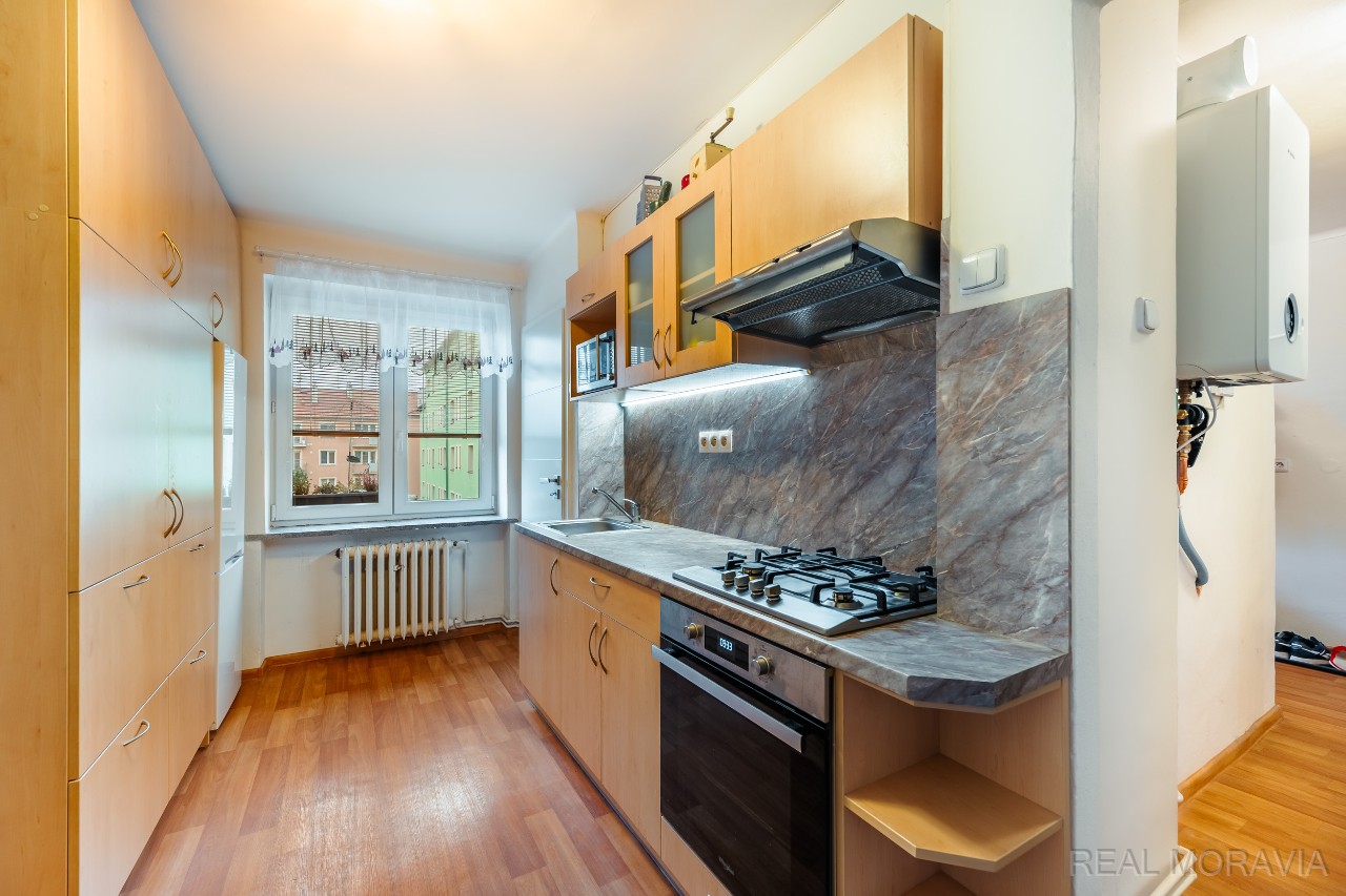 Nabízíme k pronájmu pěkný prostorný byt 2+1 v menším bytovém domě v Olomouci, ul. Za poštou, blízko nákupního centra Šantovka. Byt se nachází v 1.patře čtyřpodlažního domu bez výtahu, má výměru 55,1 m² a je po rekonstrukci v r. 2016 (vnitřní dveře, kuchyň, koupelna, podlahy, částečně elektroinstalace, částečně omítky). V domě je celkem 12 bytů, dům je po celkové revitalizaci (fasáda, zateplení, střecha, stupačky, okna, vstupní dveře, společné prostory). V bytě se nachází velká předsíň s oknem (věšáková stěna, botník), koupelna (vana se sprchovací zástěnou, umyvadlo, otopný žebřík), samostatné WC s oknem, prostorný obývací pokoj (sedačka, skříňky, stolek), kuchyň s jídelním koutem (vestavěné skříně, plyn. sporák s el. troubou, digestoř, lednice s mražákem, stůl a 4 židle), spíž (s pračkou), ložnice (vestavěná skříň, manželská postel, prac.stůl + židle). Na podlaze podlahové PVC (chodba, kuchyň), plovoucí podlaha (pokoje) a dlažba (koupelna a WC). Okna plastová, žaluzie, osvětlení ve všech pokojích. Vytápění a ohřev vody – samostatný plynový kotel, samostatné měřiče energií. K bytu patří společný balkon na chodbě a velký sklep 16 m². Přípojka na internet, pevná linka. Ve vnitrobloku za domem k dispozici dvůr se zahradou. Byt se pronajímá se částečně zařízený. Parkování na ulici před domem, nebo na parkovišti vedle domu. Orientace pokojů na jih (do ulice Za Poštou), kuchyň na sever (do vnitro bloku). V blízkosti MHD, obchodní centrum Šantovka. Volný od 1.5.2026. Měsíční nájemné 15 000 Kč + zálohy na energie a služby 3500 Kč. Majitel požaduje vratnou kauci ve výši 1 měs. nájmu vč. energií, provize RK ve výši 1měsíčního nájmu. Majitel preferuje zájemce bez domácích mazlíčků, nekuřáky, bez zatížení exekucí či insolvencí. Dlouhodobý pronájem. Kompletní informace o stavu nemovitosti obdržíte u makléře, veškeré uvedené údaje jsou pouze informativní. V případě více zájemců si majitel vybere, s kým uzavře rezervační smlouvu. PENB D.